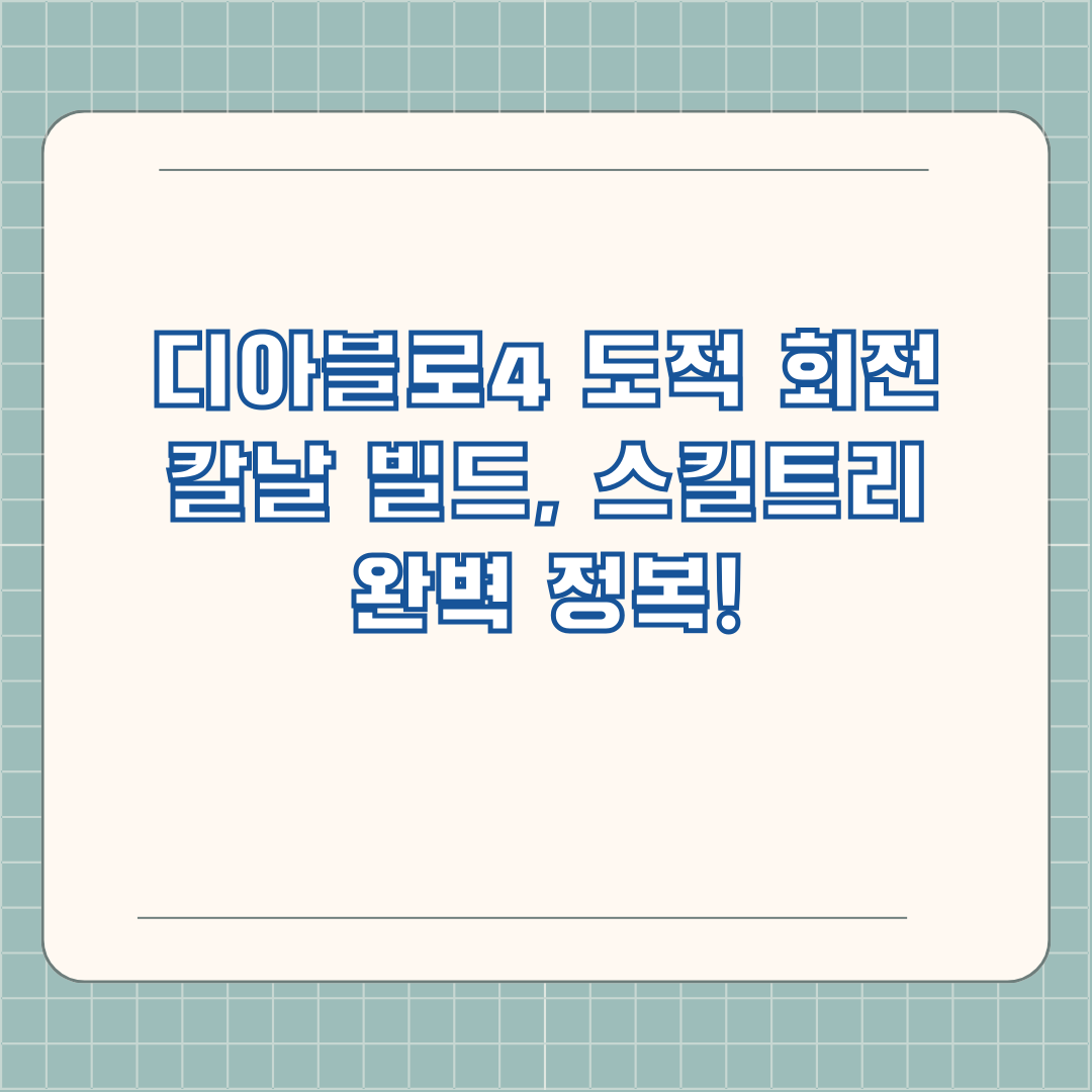 디아블로 4의 매력적인 캐릭터, 도적! 그 중에서도 날렵하고 강력한 회전 칼날 빌드는 많은 유저들의 사랑을 받고 있습니다. 회전 칼날 빌드는 화려한 액션과 강력한 딜링, 그리고 뛰어난 기동성을 자랑하지만, 어떤 스킬들을 선택해야 가장 효과적으로 플레이할 수 있을까요? 오늘은 도적 회전 칼날 빌드를 위한 스킬 트리의 모든 것을 파헤쳐 보겠습니다.